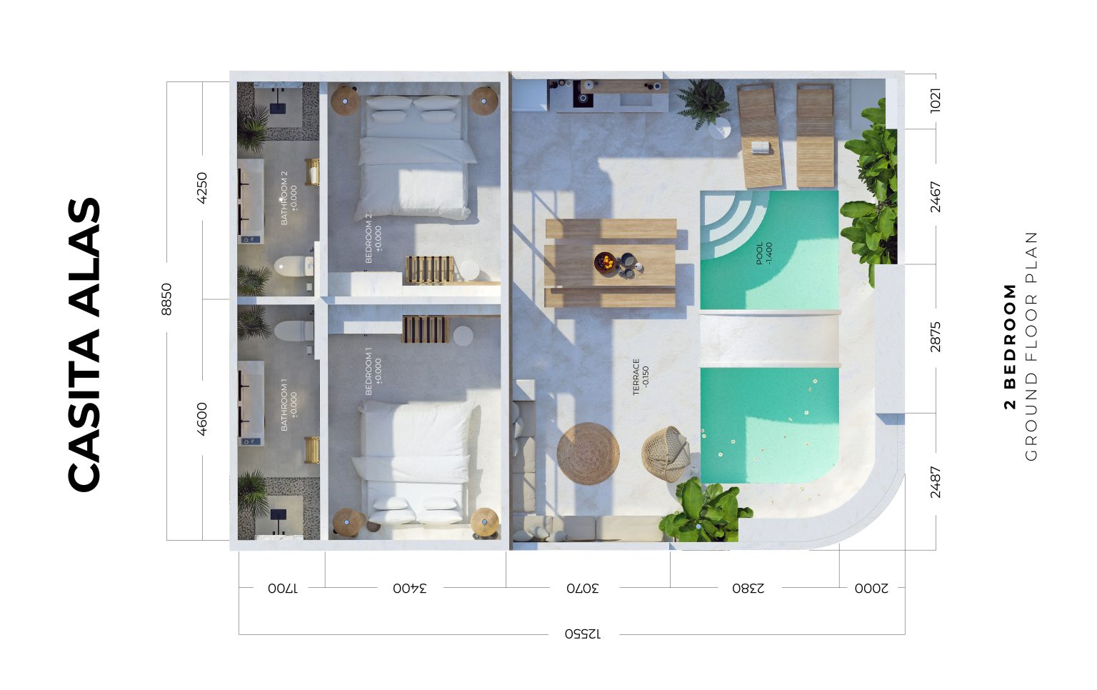 Casita Alas 2 Bedroom has been cleverly designed by our Bali architects to ensure these luxury villas have all the home comforts guests would need.