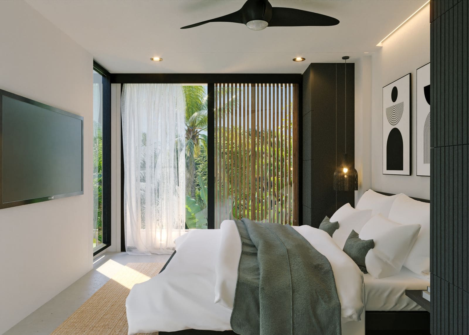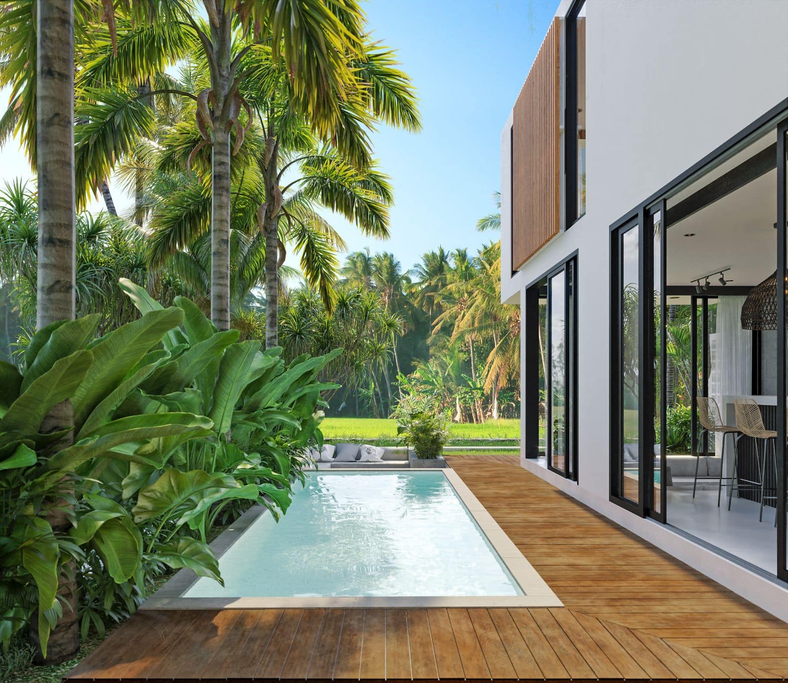 The Hitam Tiny Villa, a modern tropical architecture, redefines Bali living with its exquisite design harmonising modern aesthetics and tropical tranquility within a compact space.