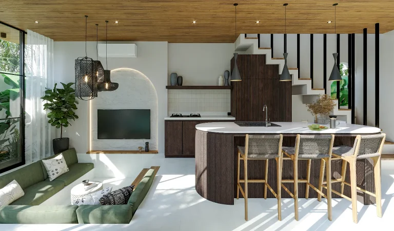 Solas Uluwatu is designed to ensure each villa is a private oasis. This two-story villa boasts a tropical Mediterranean style with a boho-themed interior.