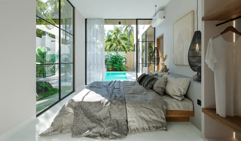 Solas Uluwatu by Balitecture combines sleek, modern design with breathtaking natural vistas. Its architecture features floor-to-ceiling windows that offer expansive, uninterrupted views of the lush landscape and coastline, blending luxury with the beauty of its surroundings. Here, contemporary elegance meets limitless scenery in perfect harmony.