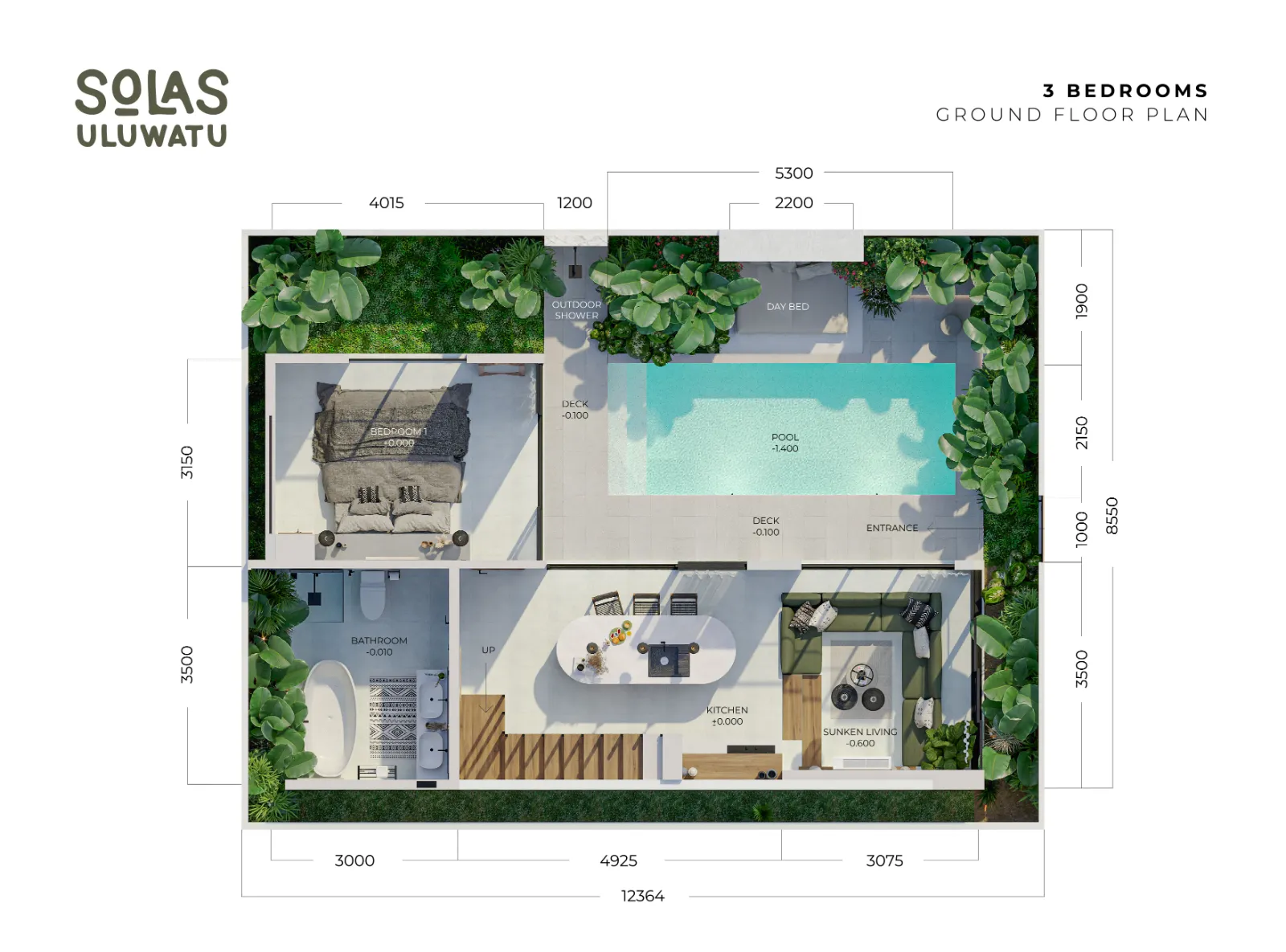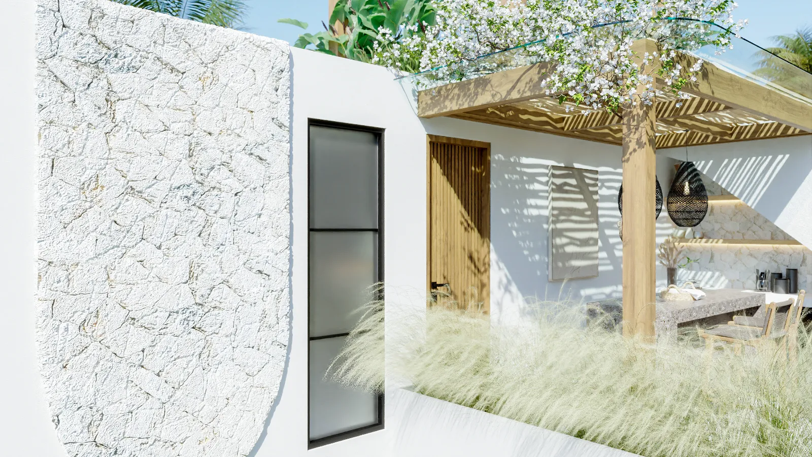 Solas Uluwatu is designed to ensure each villa is a private oasis. This two-story villa boasts a tropical Mediterranean style with a boho-themed interior.
